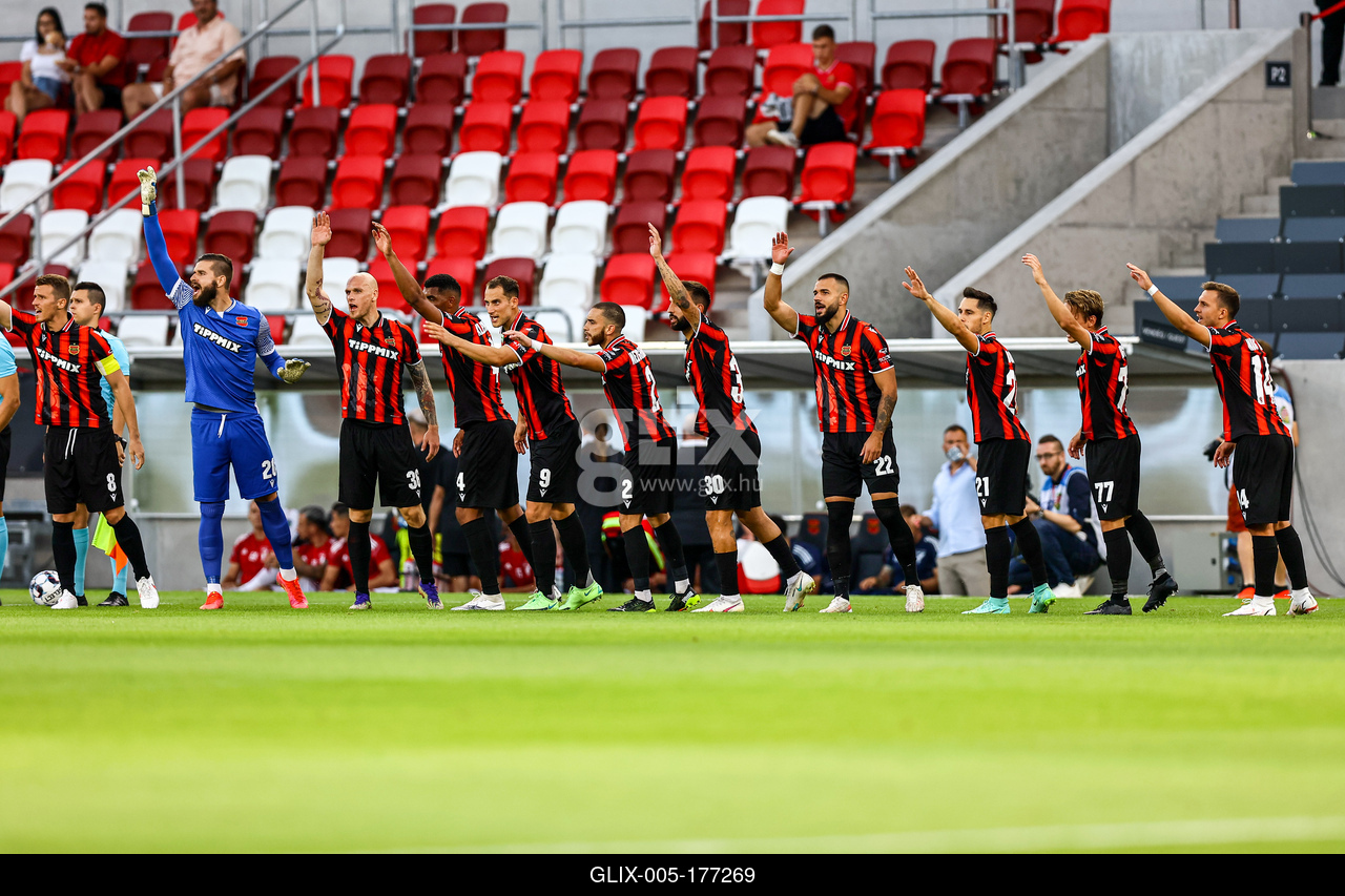 HIDI PATRIK (Honvéd FC #8), 20 SZAPPANOS PÉTER (Honvéd FC #20), 36 BARÁTH BOTOND (Honvéd FC #36), #4 LUKAS KLEMENZ (Honvéd FC #4), #9 EPPEL MÁRTON (Honvéd FC #9), #2 MEZGHRANI MOHAMED (Honvéd FC #2), 30 NONO (Honvéd FC #30), 22 TAMÁS KRISZTIÁN (Honvéd FC #22), 21 BŐLE LUKÁCS (Honvéd FC #21), 77 NAGY GERGŐ (Honvéd FC #77), football played in the first round of the OTP Bank League in the Budapest Honvéd - Debrecen VSC match in the new Bozsik Arena in Budapest on July 31, 2021. Photo: Trenka Attila