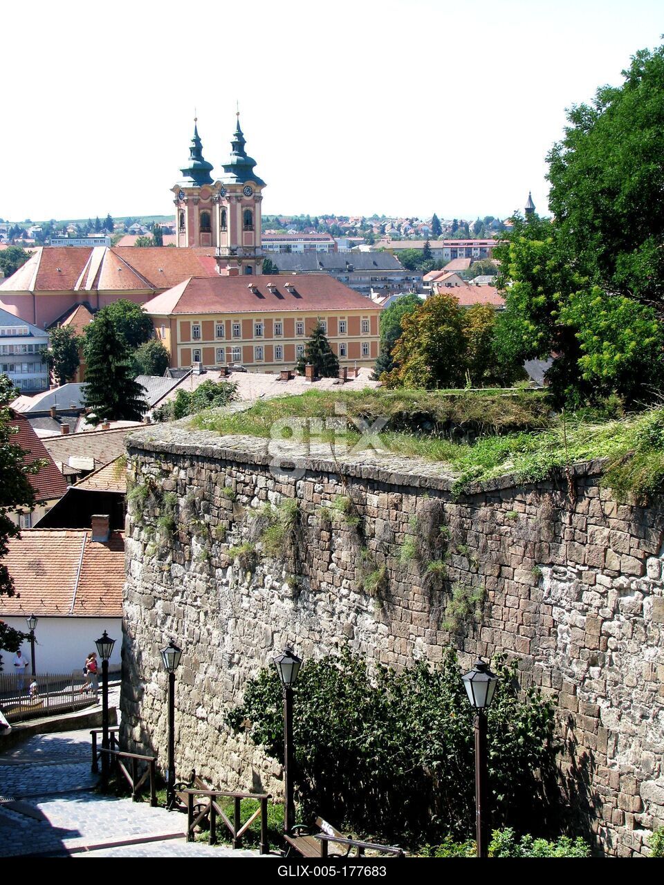 Eger, 2008. augusztus 20. The Eger Minorite Church in the foreground with the wall of the Eger Castle.Az egri Minorita templom előtérben az egri vár falával.
