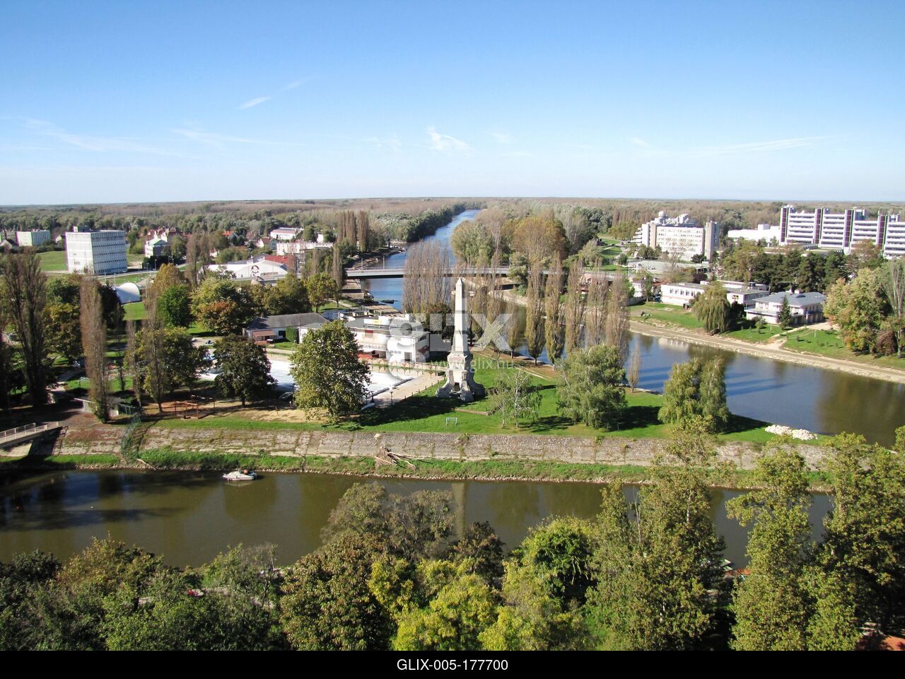 Győr, 2014. október 19.The meeting of the Mosoni Danube and the Rába at Győr. In the middle is the Cziráky obelisk on the island of Radó.A Mosoni Duna és a Rába találkozása Győrnél. Középen a Cziráky obeliszk, a Radó szigeten.