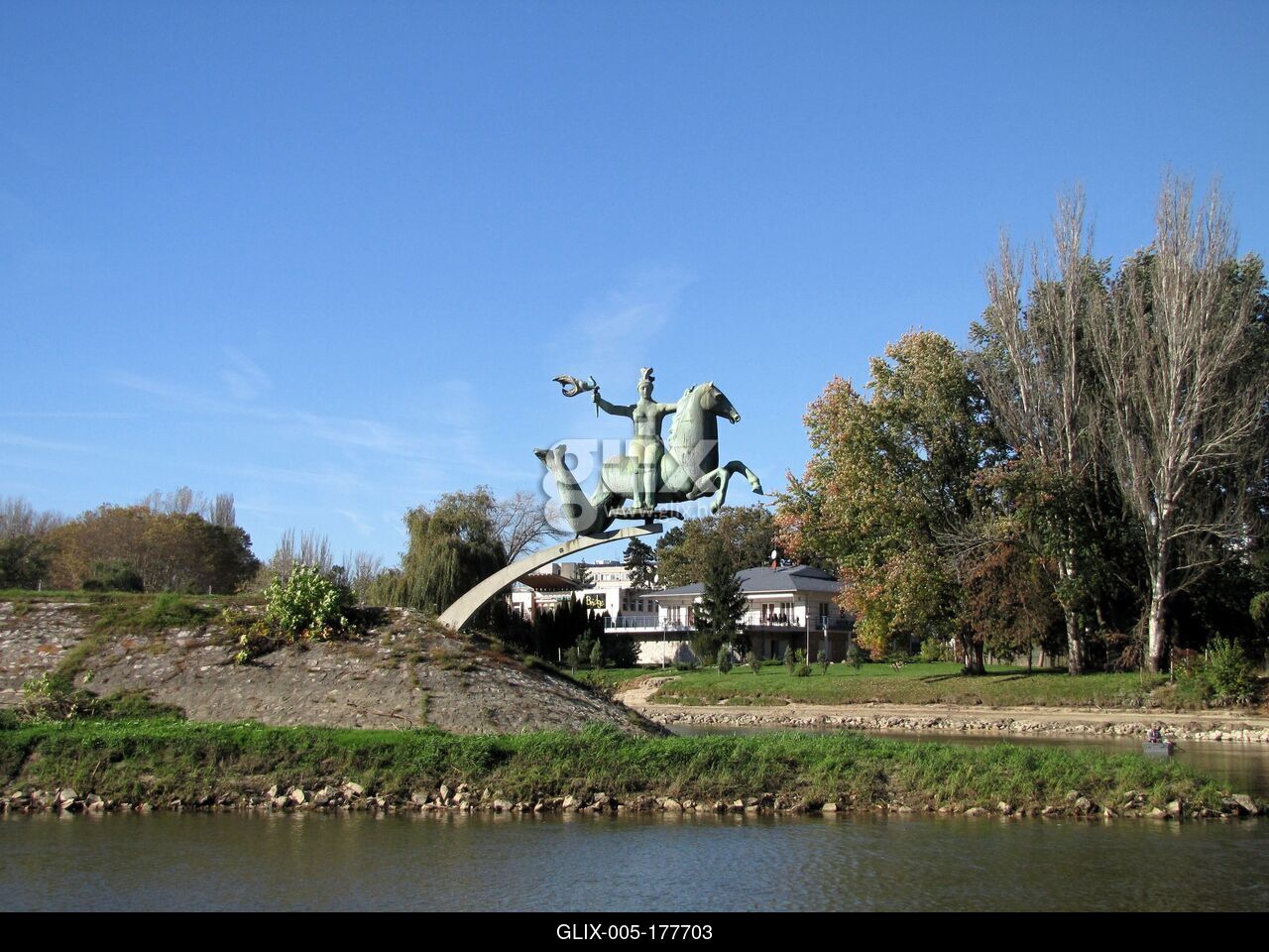 Győr, 2014. október 19.The Water Foal statue at the mouth of the Mosoni-Danube and Rába rivers. A work by Makris Agamemnon from 1958, inaugurated in 1981.A Vízi csikó szobor a Mosoni-Duna és Rába folyó torkolatánál. Makrisz Agamemnon 1958-ból származó, 1981-ben felavatott alkotása.