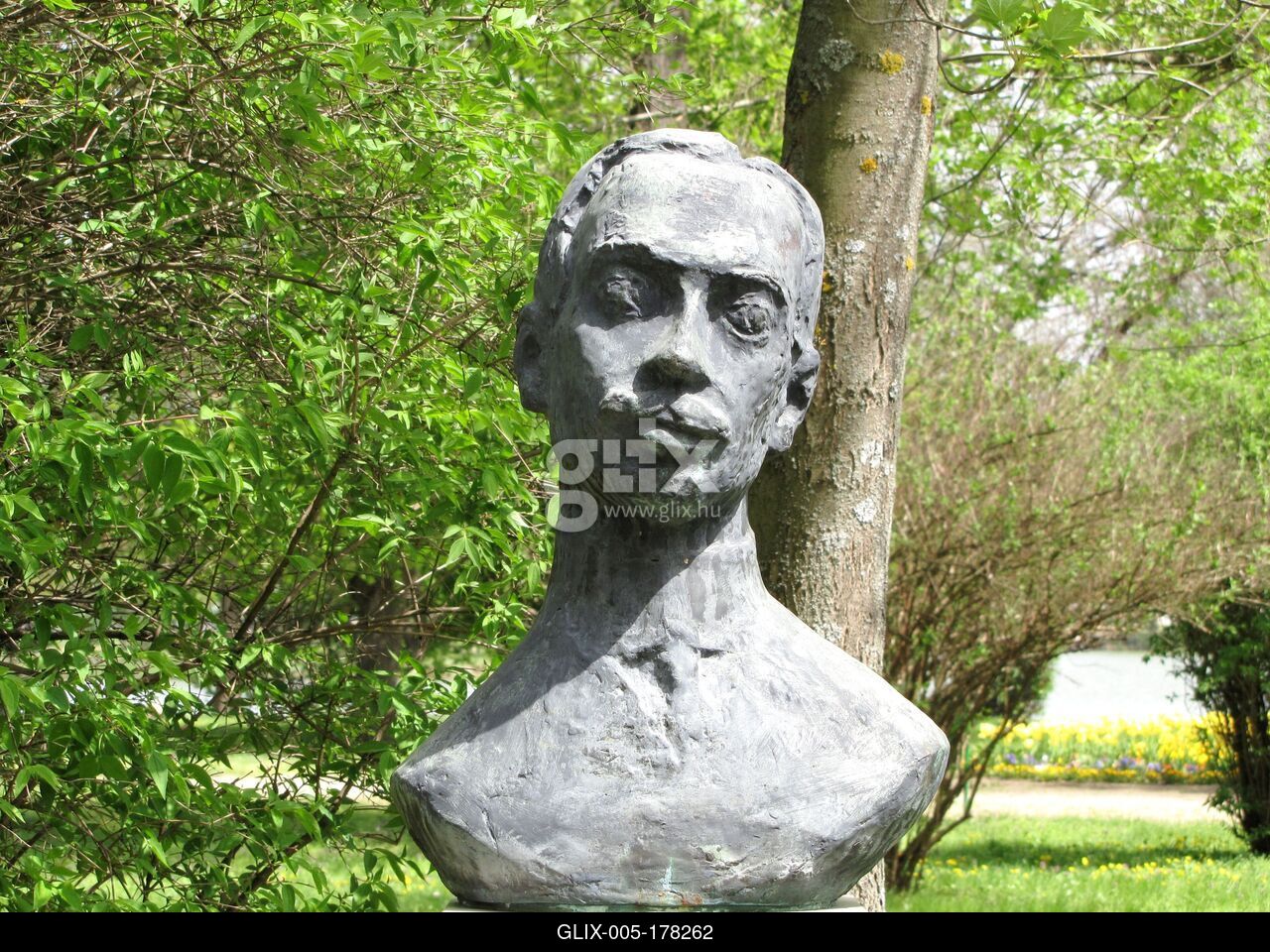 Nyíregyháza-Sóstó, 2013. április 27.Bust of Hungarian writer Gyula Krúdy in the Sóstó park in Nyíregyháza. It was created by Dezső Mészáros in 1973.Krúdy Gyula mellszobra a sóstói parkban. Mészáros Dezső alkotta 1973-ban.