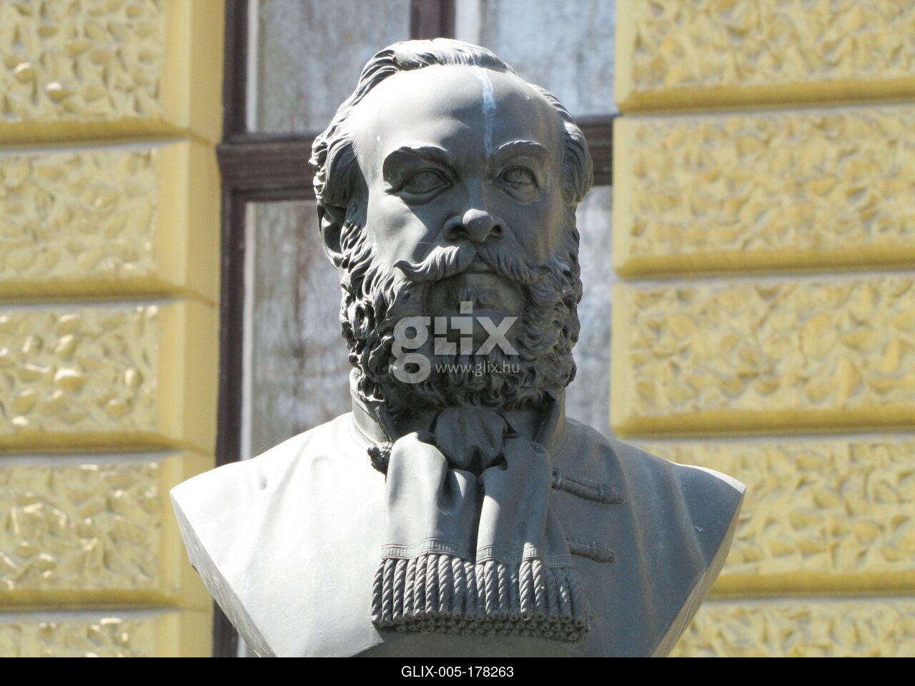 Nyíregyháza, 2013. április 26.Statue of Count Menyhért Lónyay in front of the county house, in the Heroes' Square. The work of Sándor Györfi was made in 2000. Menyhért Lónyay was the Prime Minister of Hungary between 1871-72. He also held the position of President of the Hungarian Academy of Sciences.Gróf Lónyay Menyhért szobra a megye háza előtt, a Hősök terén. Györfi Sándor 2000-ben készült alkotása. Lónyay Menyhért Magyarország miniszterelnöke volt 1871-72 között. A Magyar Tudományos Akadémia elnöki tisztségét is betöltötte.