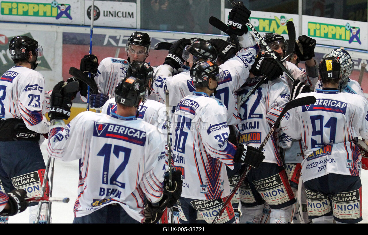 A képen: Az Alba Volán Fehérvár Jégkorong csapat ünnepel a jégen