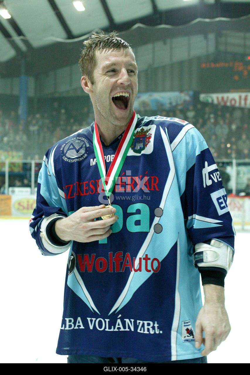 A képen: Ocskay Gábor magyar jégkorongozó, az Alba Volán SC játékosa, miután csapata megnyerte a Magyar Kupát az UTE csapata ellen.