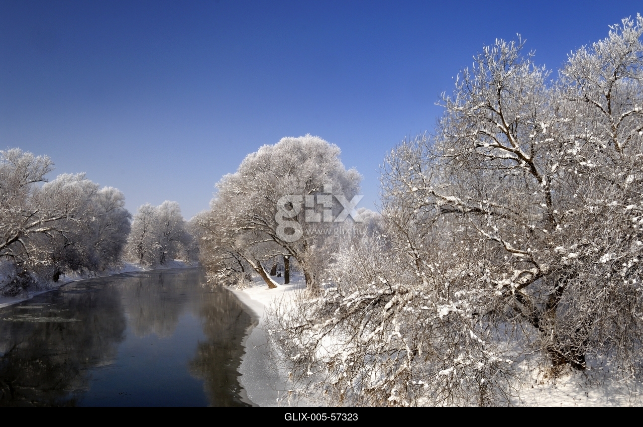 Hóval és téli zúzmarával borított táj a Sajó folyónál, Sajópüspöki határában.