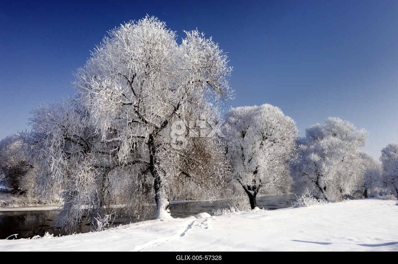 Hóval és téli zúzmarával borított táj a Sajó folyónál, Sajópüspöki határában.