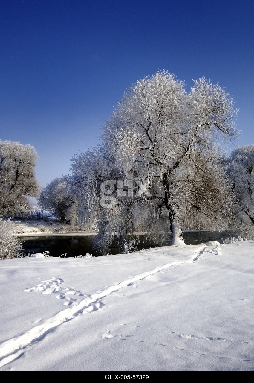Hóval és téli zúzmarával borított táj a Sajó folyónál, Sajópüspöki határában.