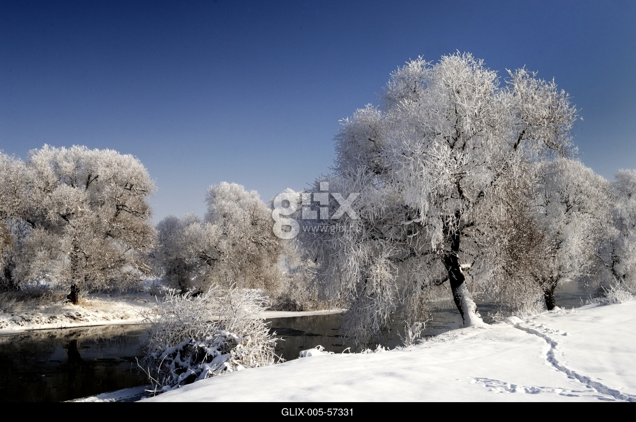 Hóval és téli zúzmarával borított táj a Sajó folyónál, Sajópüspöki határában.