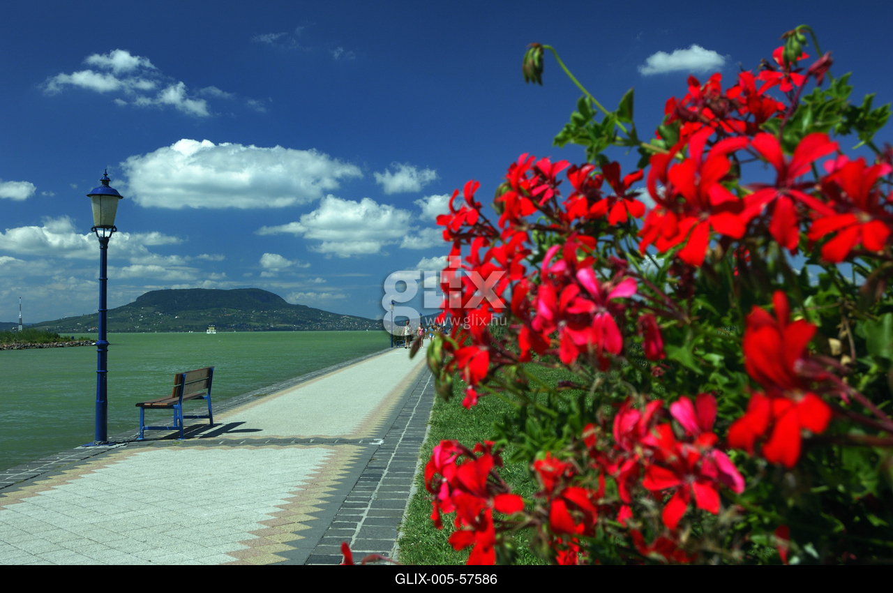 A fonyódi móló, szemben a Badacsony, a Tapolcai-medence legmagasabb tanúhegye.