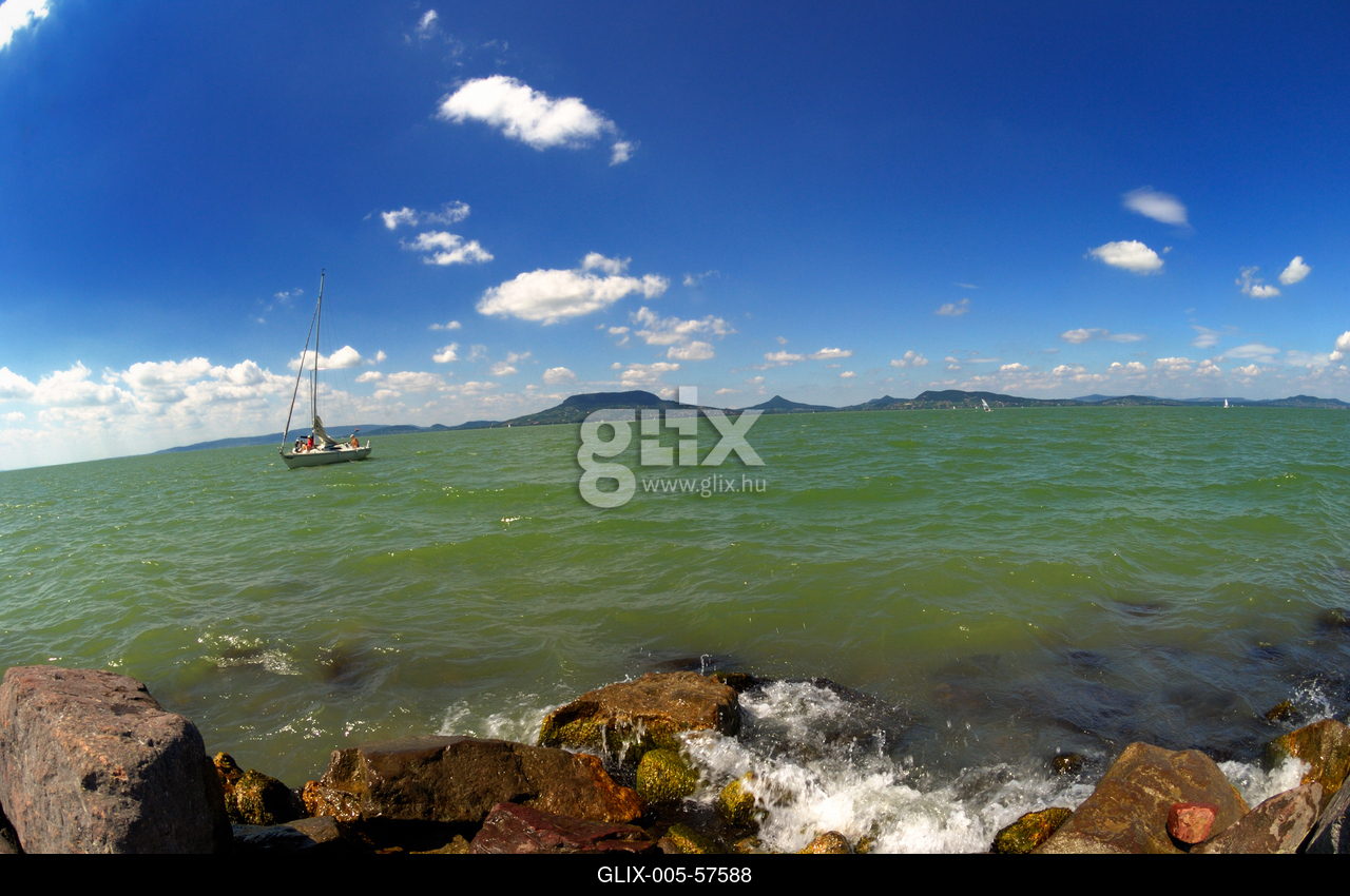 Fonyód, szemben a Badacsony és a Tapolcai-medence tanúhegyei.