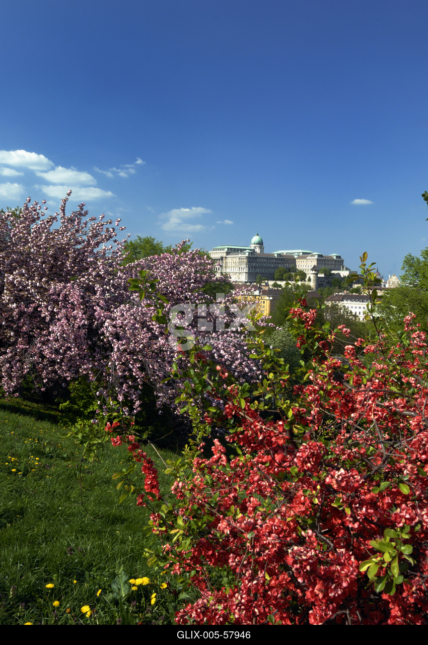 A Budavári Palota (Budai Vár) látványa a Gellért-hegyről.