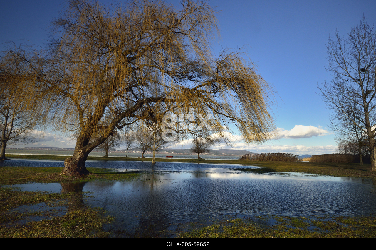 Balatonberény, a Balaton partja tél végén.