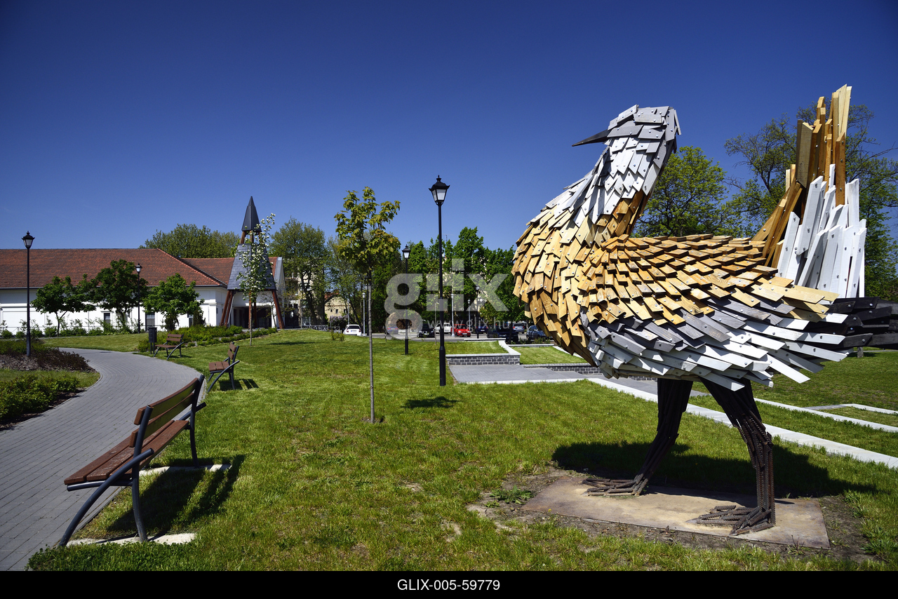 A Szőke Gábor Miklós szobrászművész által megálmodott 3 méteres túzok szobor a Semsey kastély parkjában.