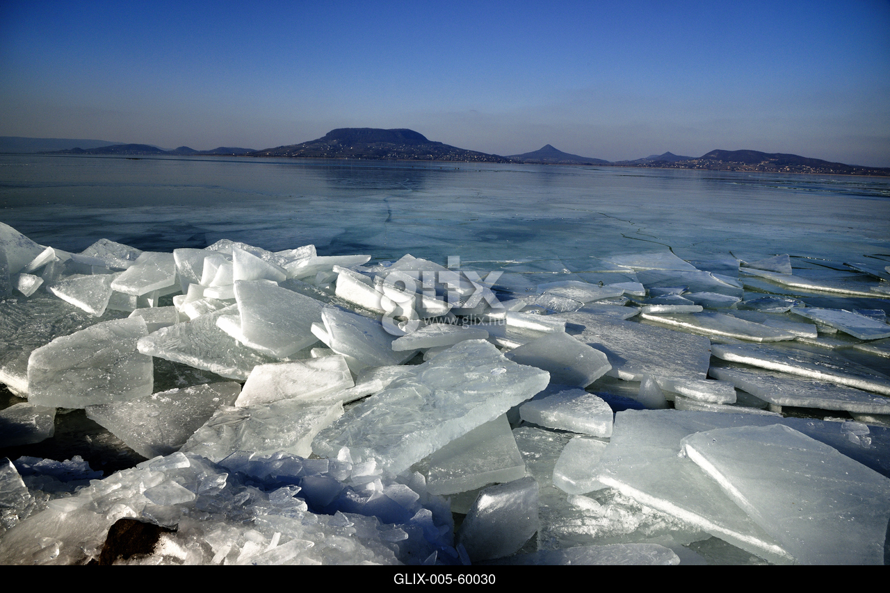 Fonyód, feltorlódott jégtáblák a Balatonon.