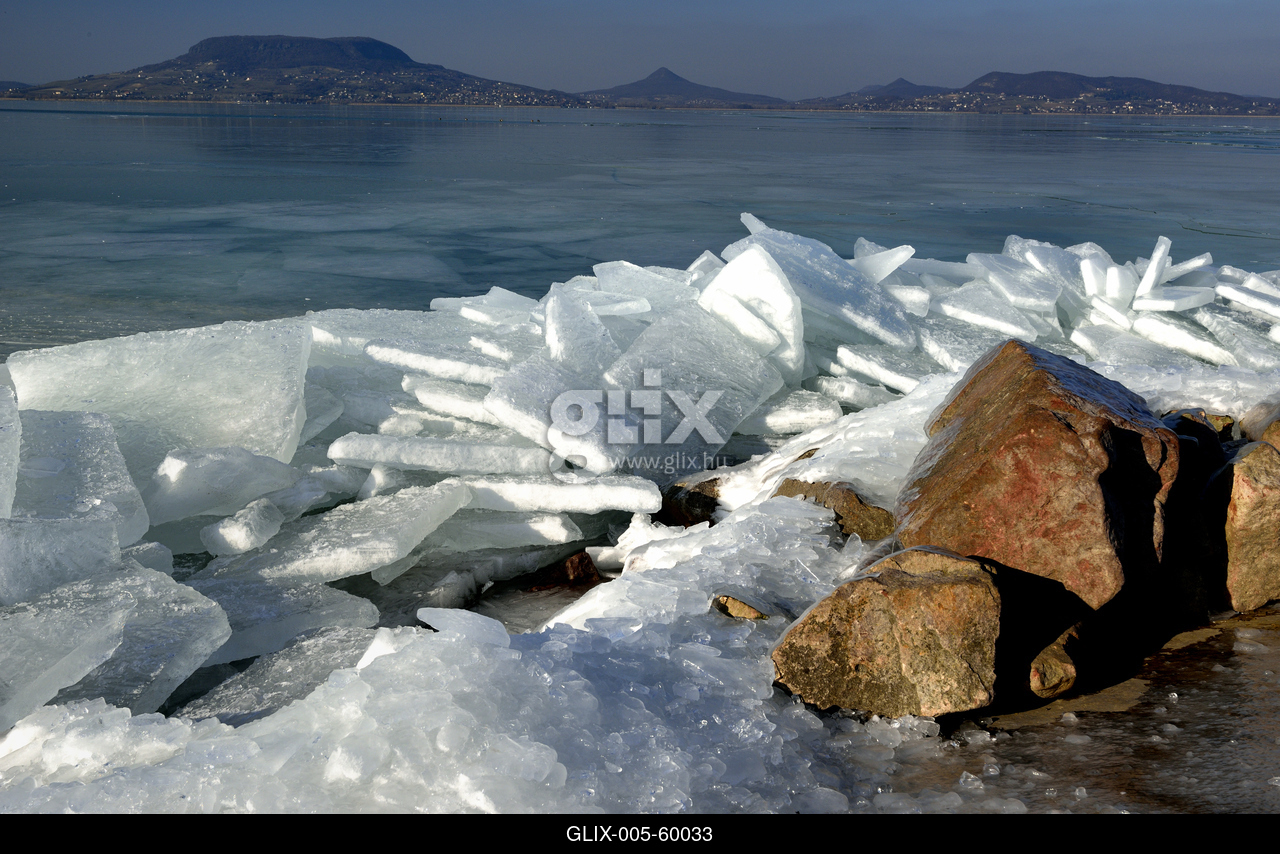 Fonyód, feltorlódott jégtáblák a Balatonon.