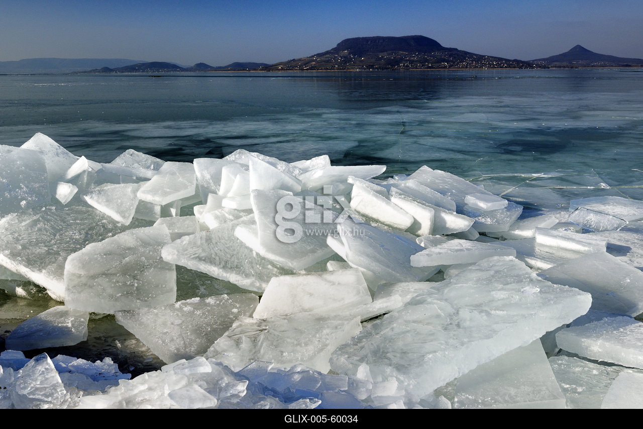 Fonyód, feltorlódott jégtáblák a Balatonon.