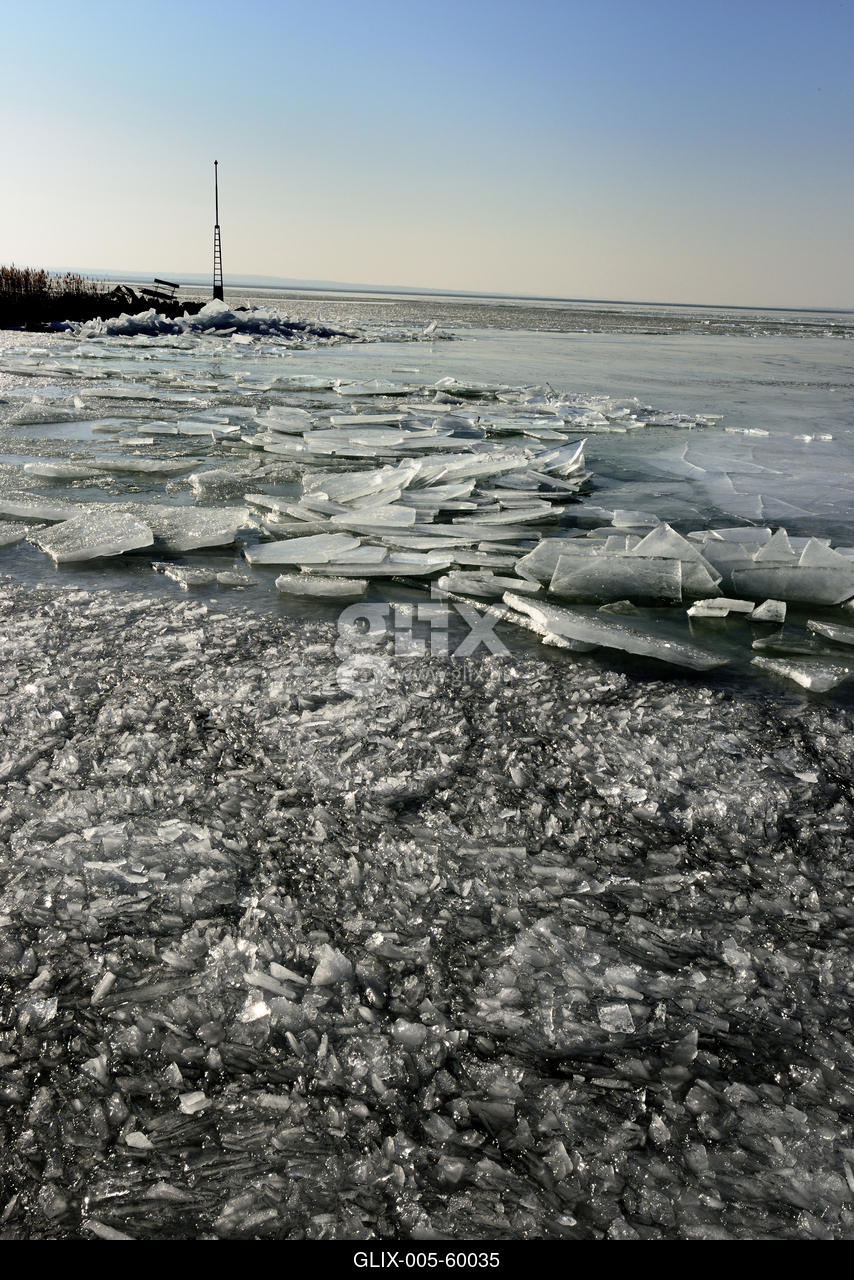 Fonyód, feltorlódott jégtáblák a Balatonon.