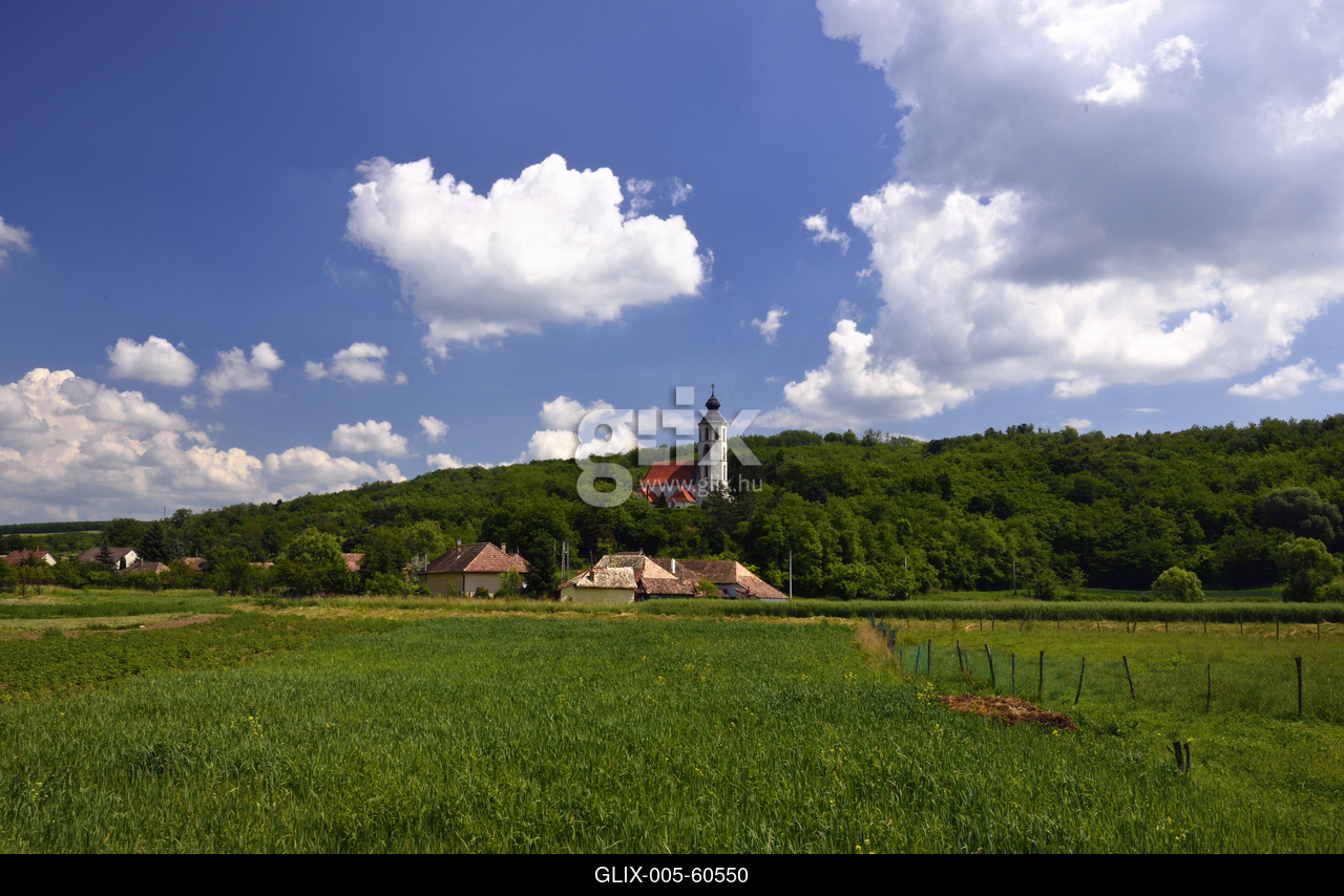 Cserhátsurány, háttérben a római katolikus templom.