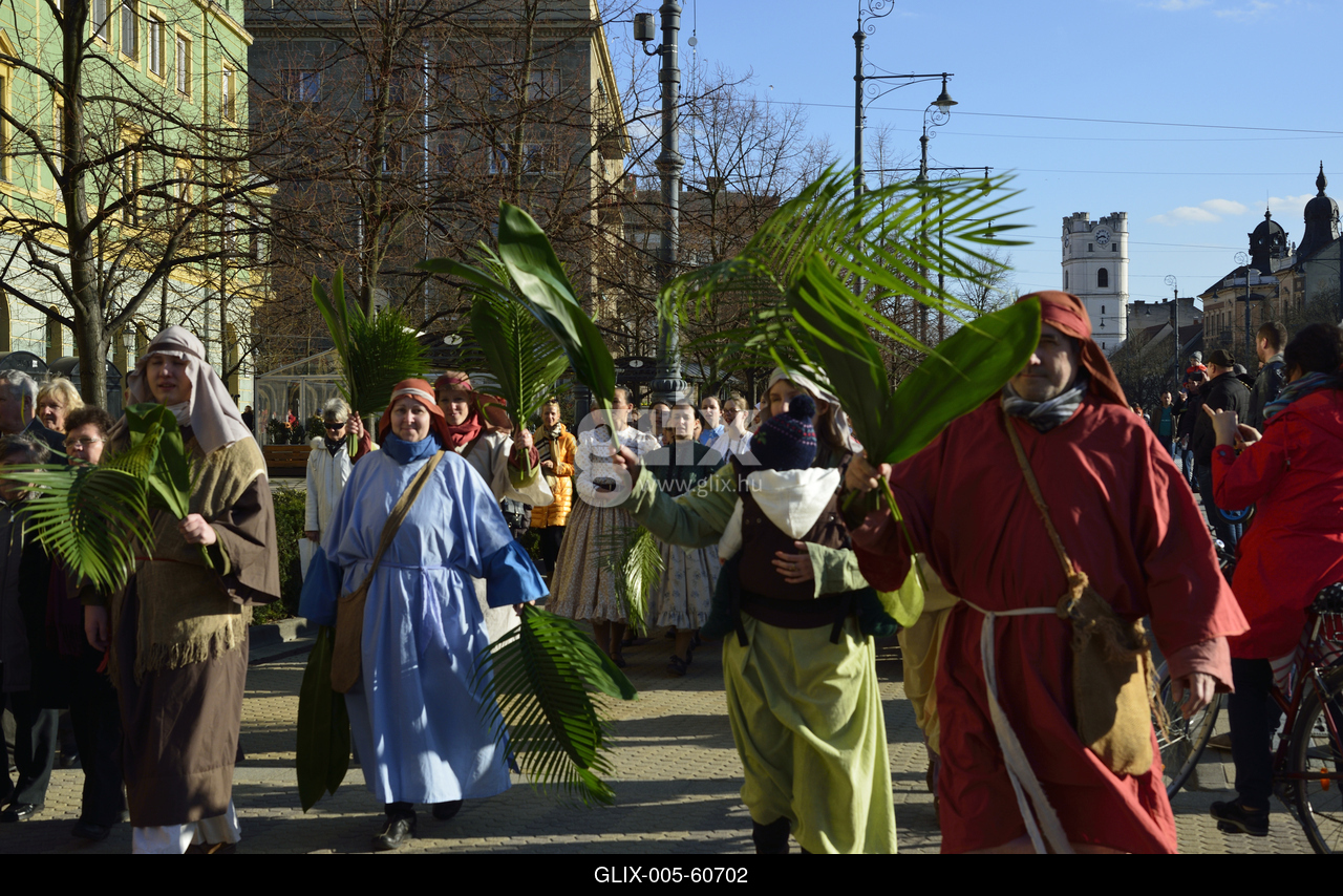 Virágvasárnapi felvonulás Debrecen belvárosában.