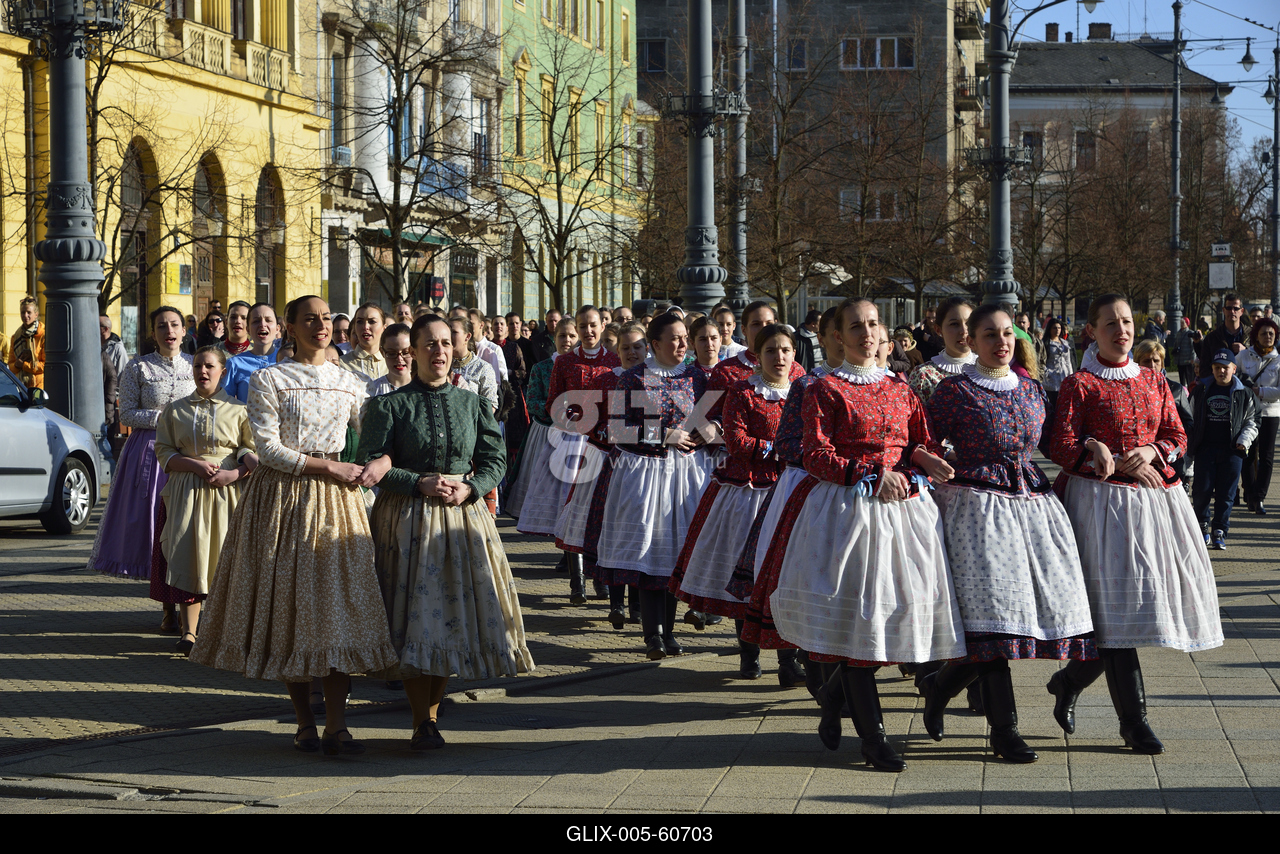 Virágvasárnapi felvonulás Debrecen belvárosában.