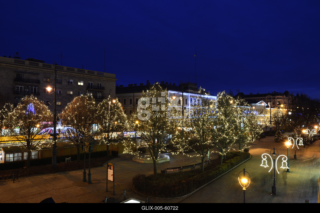 Karácsonyi díszkivilágítás Debrecen belvárosában.