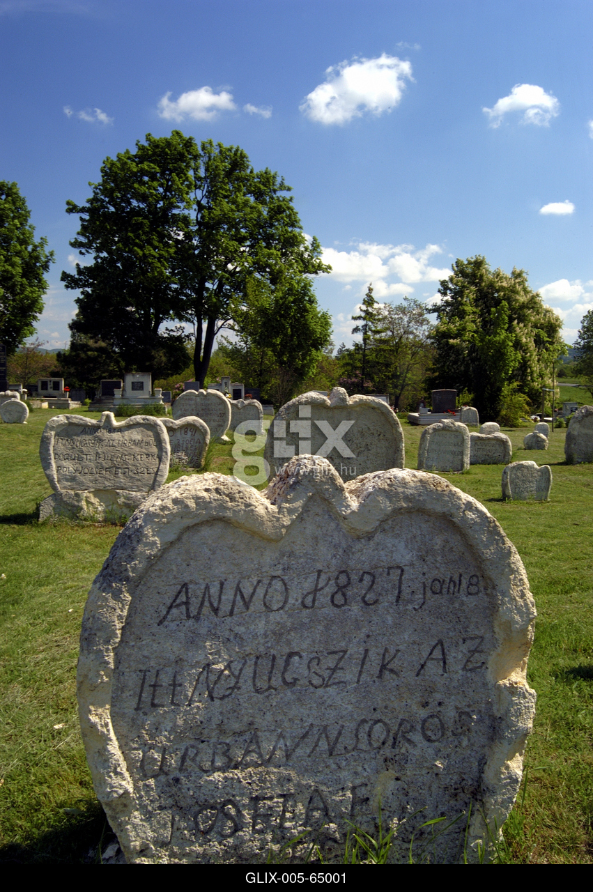 Szív alakú sírkövek a balatonudvari műemlék temetőben.