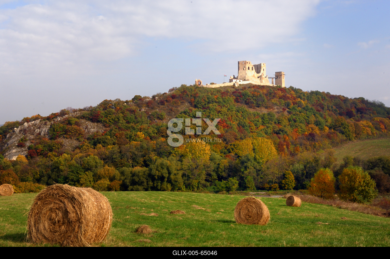 A Csesznek község felett található középkori vár - Cseszneki Vár - látványa a Bakony hegységben.
