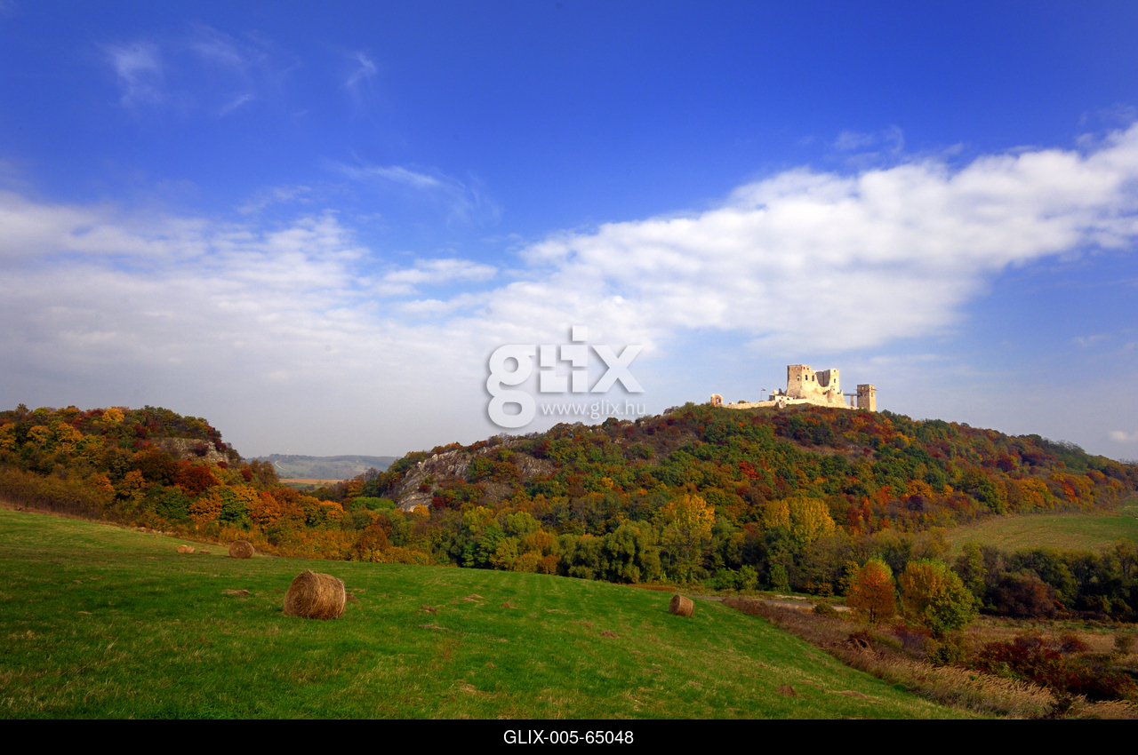 A Csesznek község felett található középkori vár - Cseszneki Vár - látványa a Bakony hegységben.