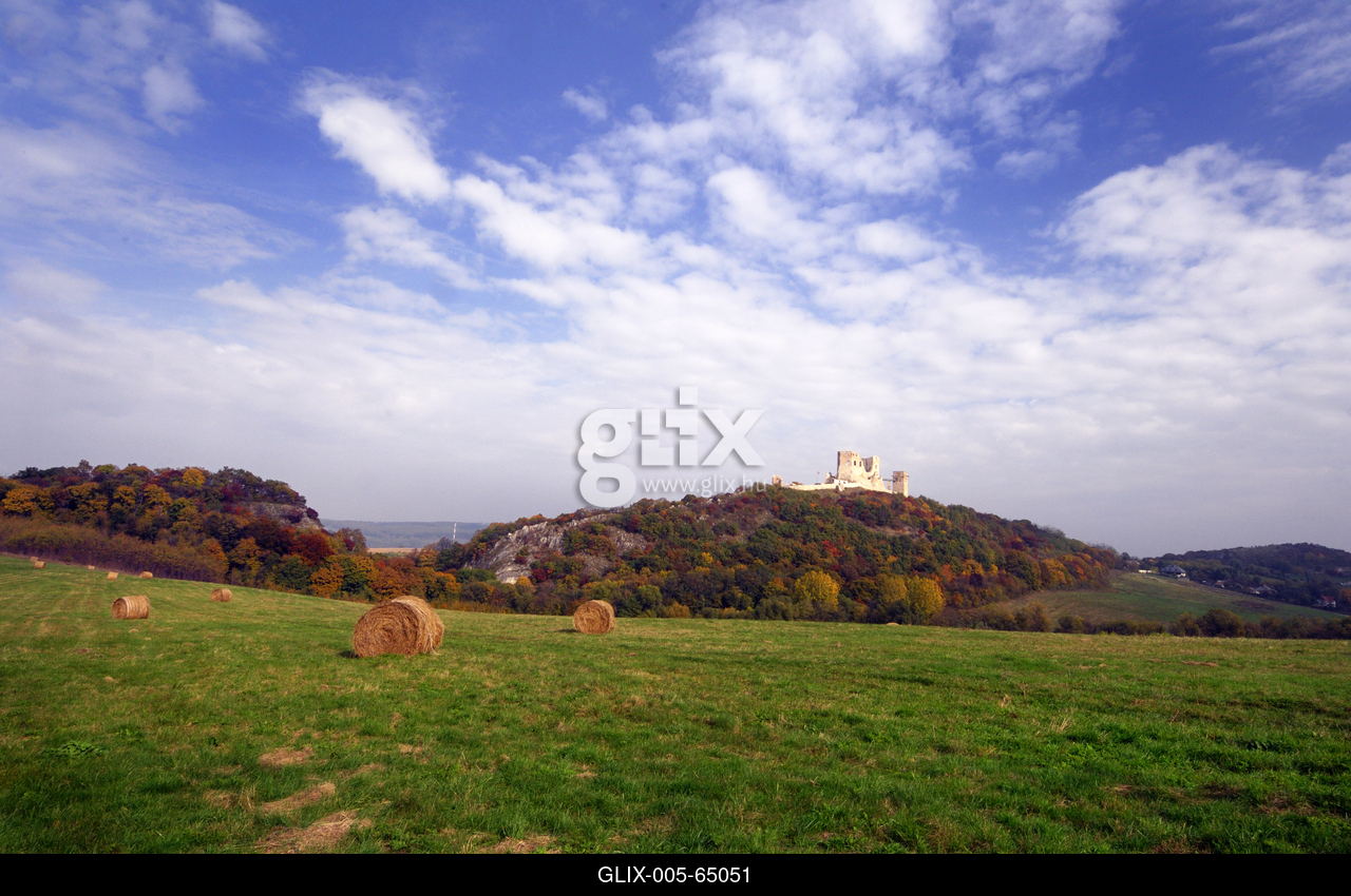 A Csesznek község felett található középkori vár - Cseszneki Vár - látványa a Bakony hegységben.