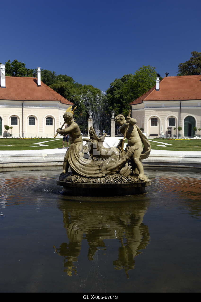 A fertődi Esterházy-kastély barokk épületegyüttese. Mai formáját a 18. század második felében nyerte el. „Magyar Versailles”-nak is nevezik. A díszudvar szökőkútja.