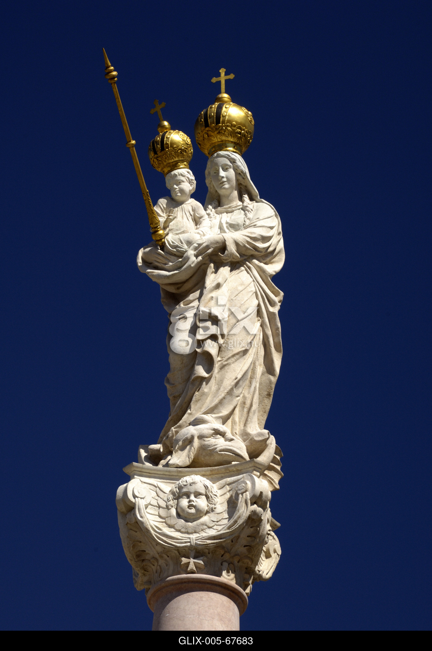 A Széchenyi tér közepén álló Mária oszlopot Kollonich Lipót győri püspök emeltette Buda töröktől való visszafoglalása emlékére.