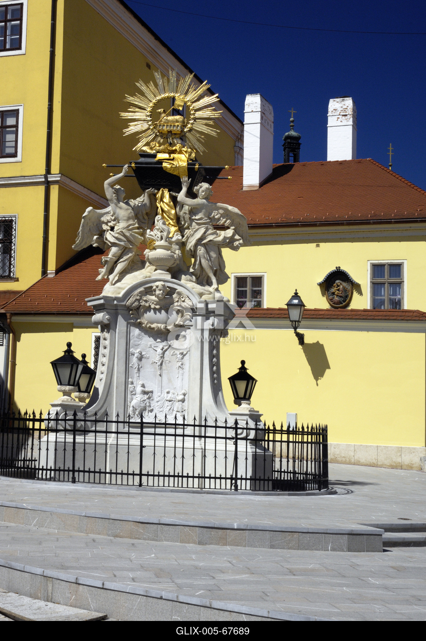 A Gutenberg téren áll a győri barokk egyik legszebb emléke, a Frigyláda szobor, melyet III. Károly császár emeltetett 1731-ben.