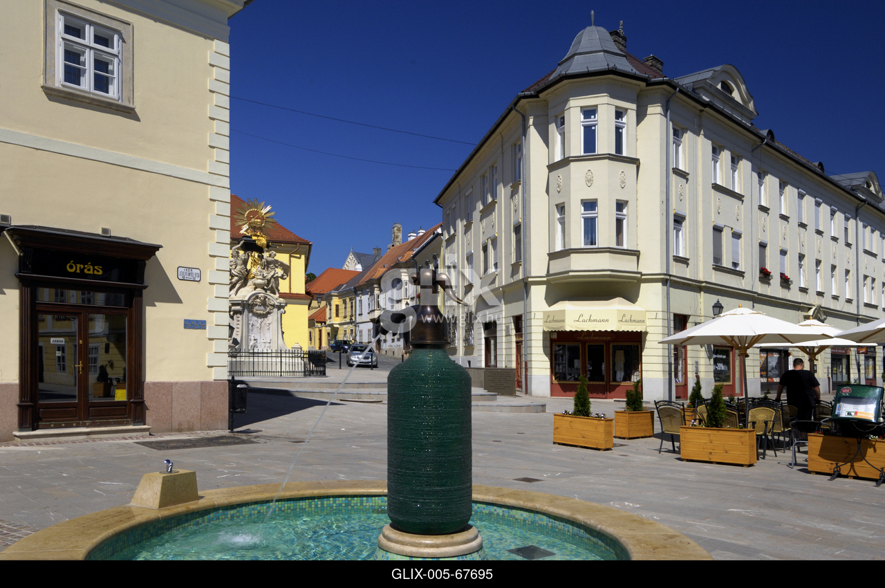 Jedlik - csobogó a Gutenberg téren. A szódásüveg formájú díszkutat Jedlik Ányos bencés szerzetes, a szódavíz feltalálójának tiszteletére állították.