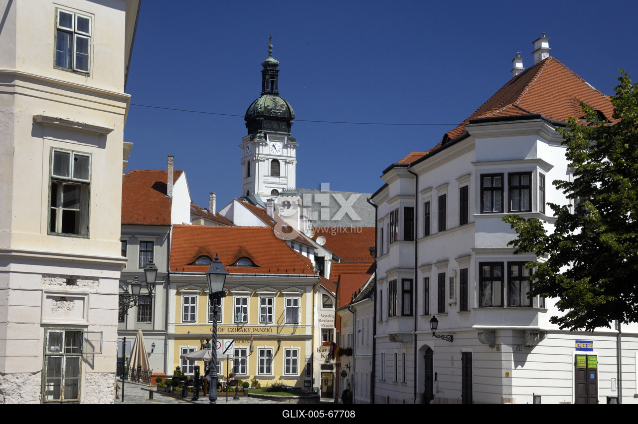 A barokk Bécsi kapu tér Győr történelmi belvárosának egyik legjelentősebb tere. Háttérben a Bazilika tornya.