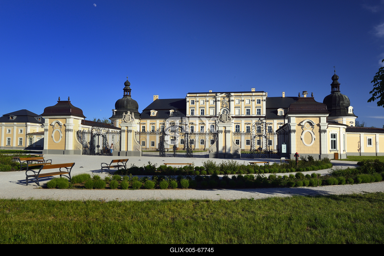 Az épületet többször átalakított barokk kert veszi körül.