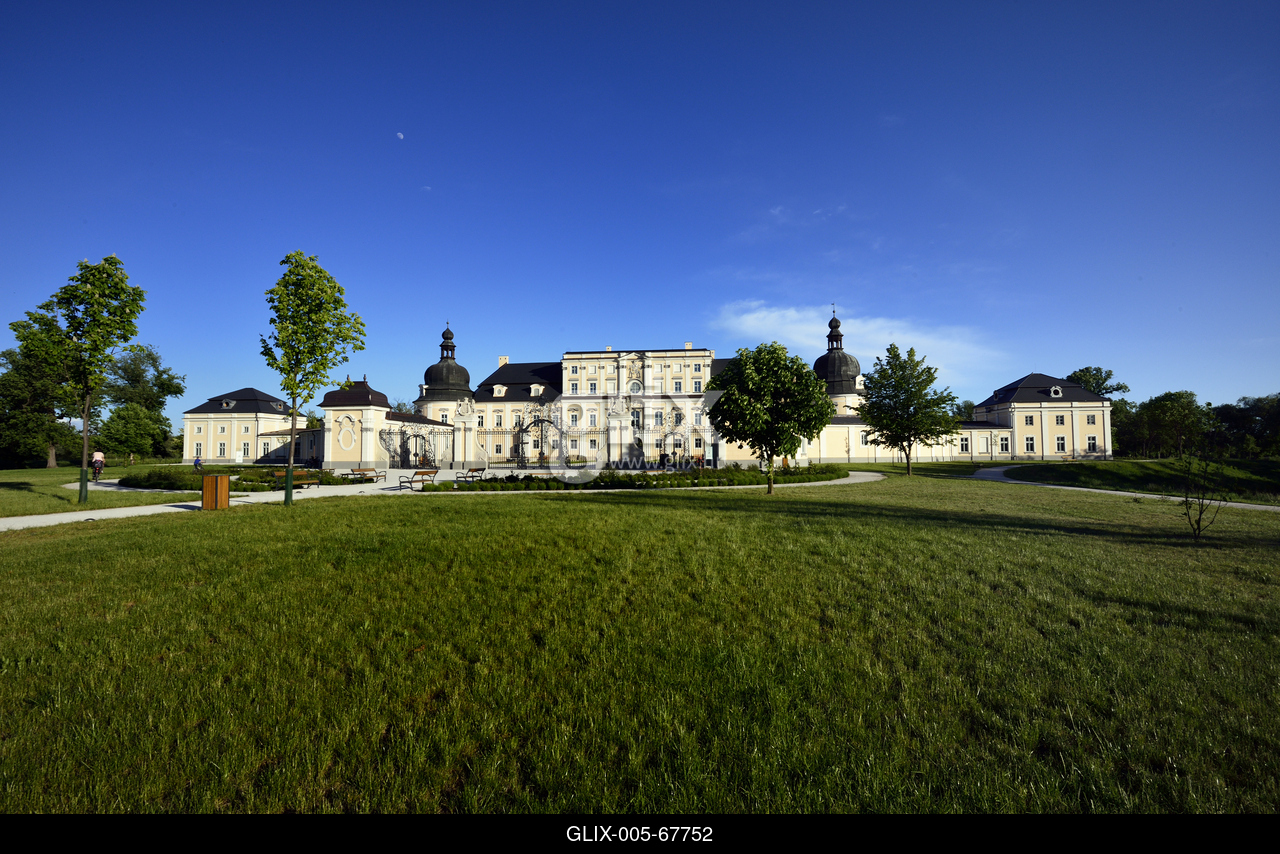 Az épületet többször átalakított barokk kert veszi körül.