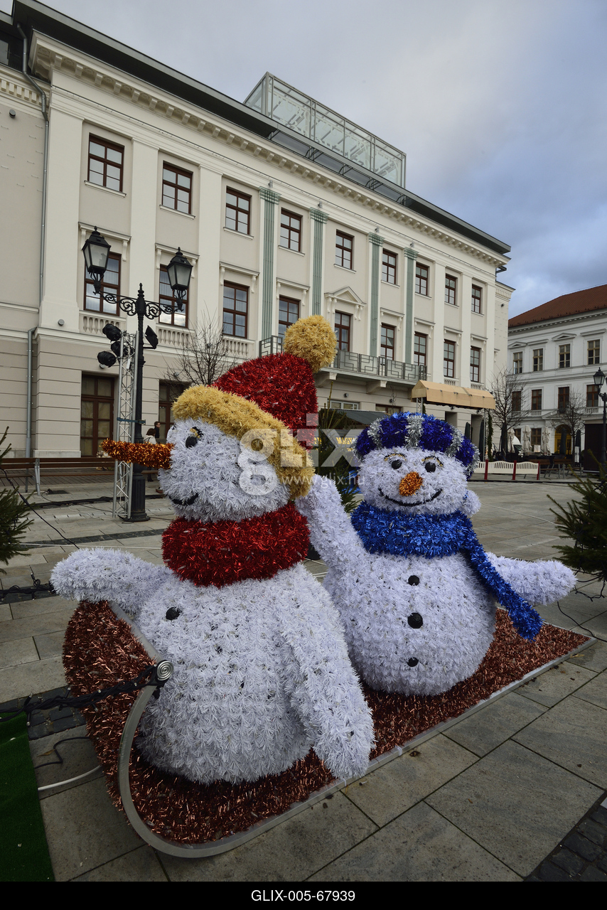 Hóemberek a Széchenyi téren a város barokk főterén.