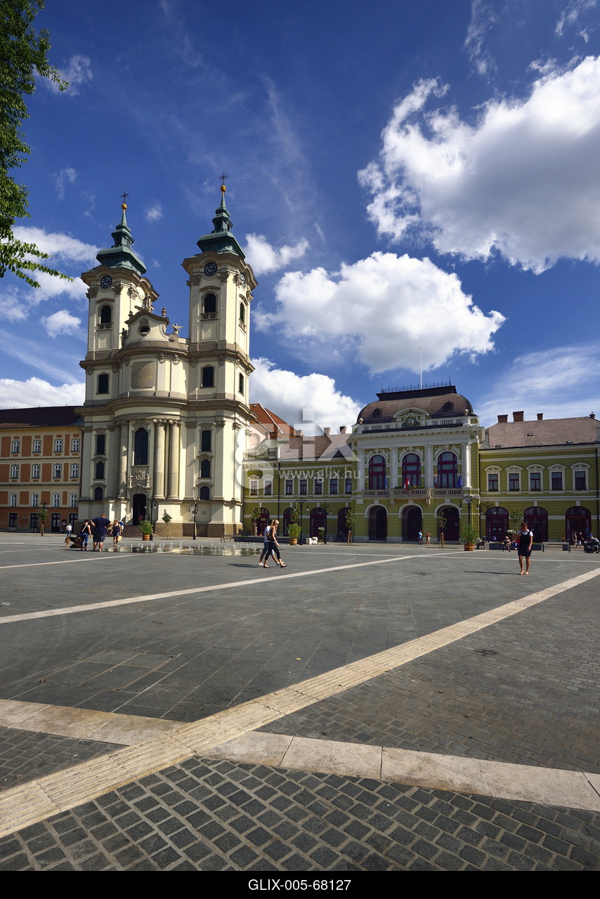 A Dobó István tér (Dobó tér) Eger történelmi belvárosának főtere. Háttérben a minorita templom és a városháza.