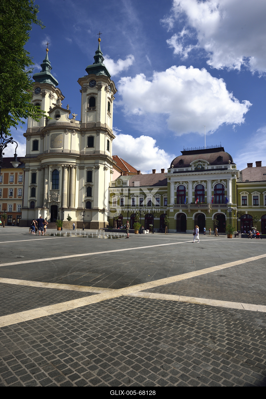 A Dobó István tér (Dobó tér) Eger történelmi belvárosának főtere. Háttérben a minorita templom és a városháza.