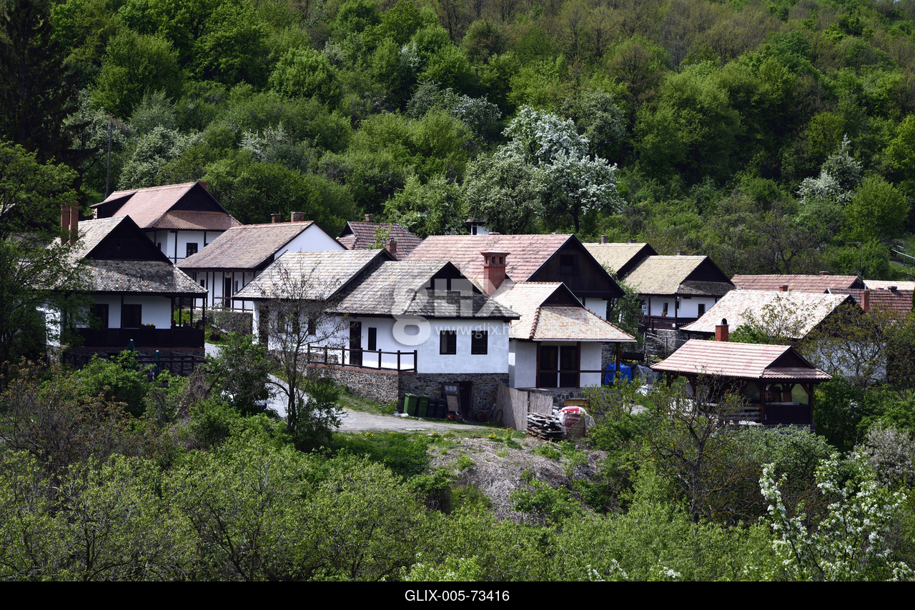A Cserhát hegyei között meghúzódó Hollókő védett házai az Ó faluban.