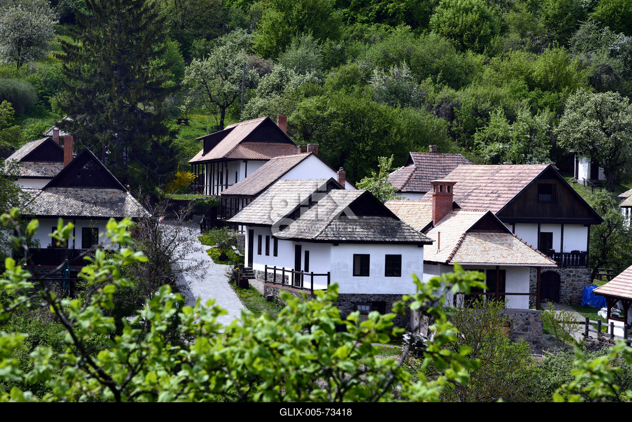 A Cserhát hegyei között meghúzódó Hollókő védett házai az Ó faluban.