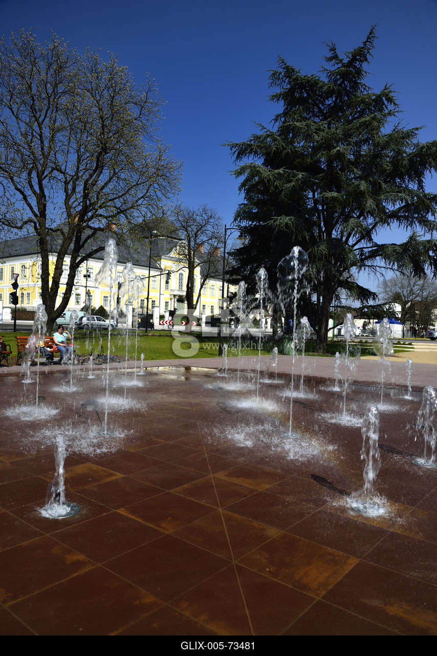 Hatvan főtere, háttérben a Grassalkovich-kastély copf stílusba hajló, késő barokk épülete.