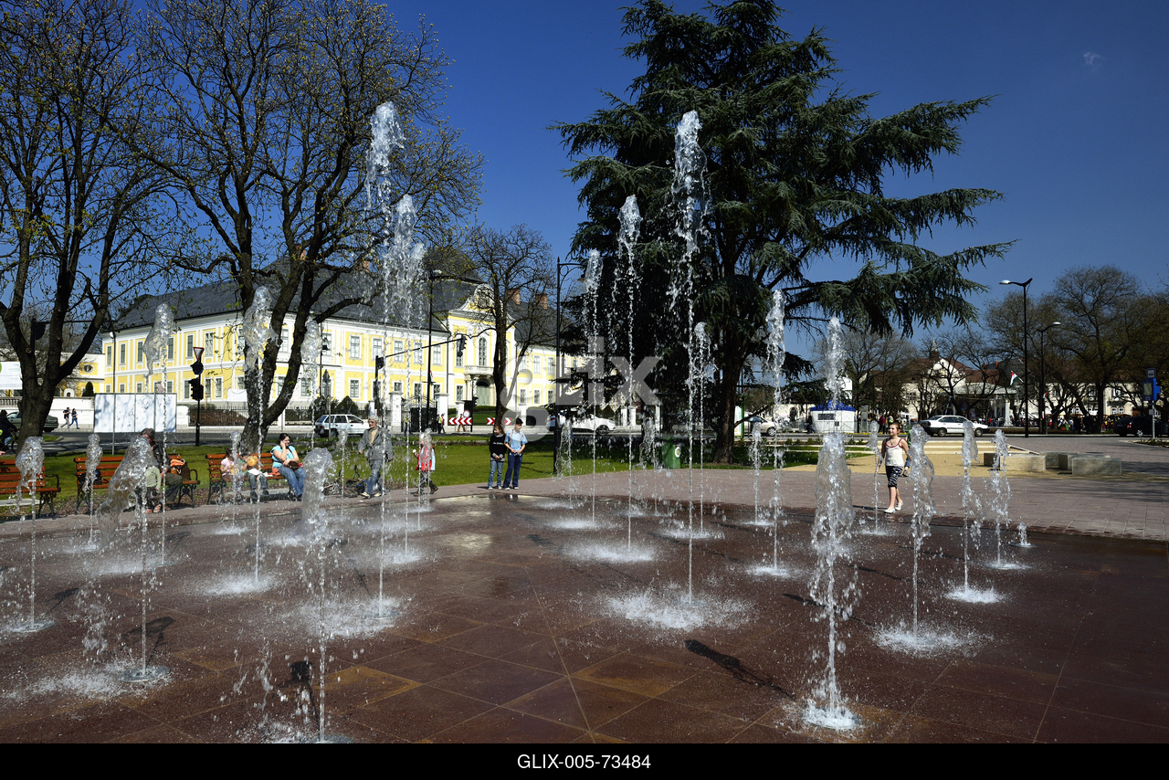 Hatvan főtere, háttérben a Grassalkovich-kastély copf stílusba hajló, késő barokk épülete.