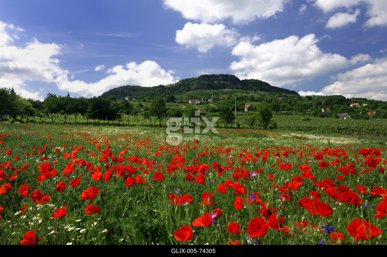 Virágmező a Szent György-hegy lábánál. A Szent György-hegy a Balaton-felvidék másik legjelentősebb tanúhegye, oldalán hatalmas bazaltoszlopok találhatók.
