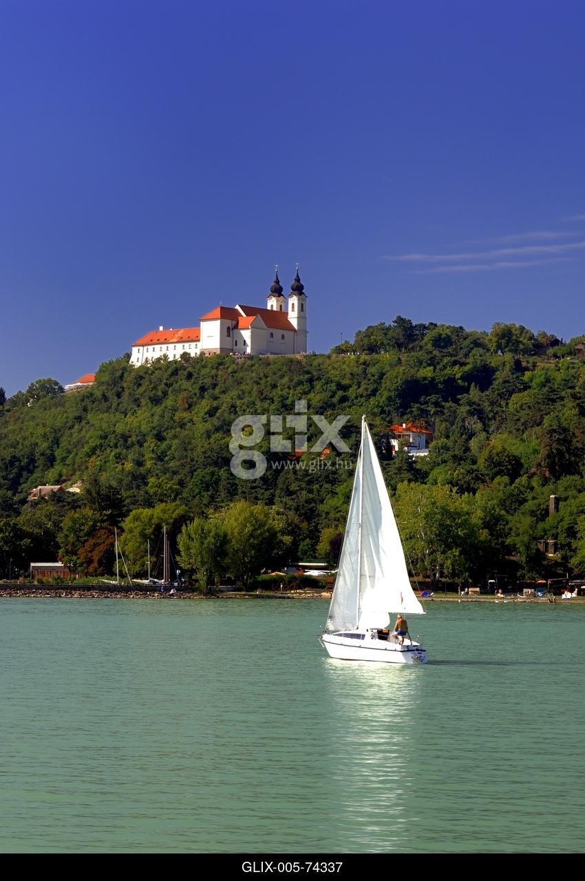 A Tihanyi Bencés Apátság látványa a Balatonról.