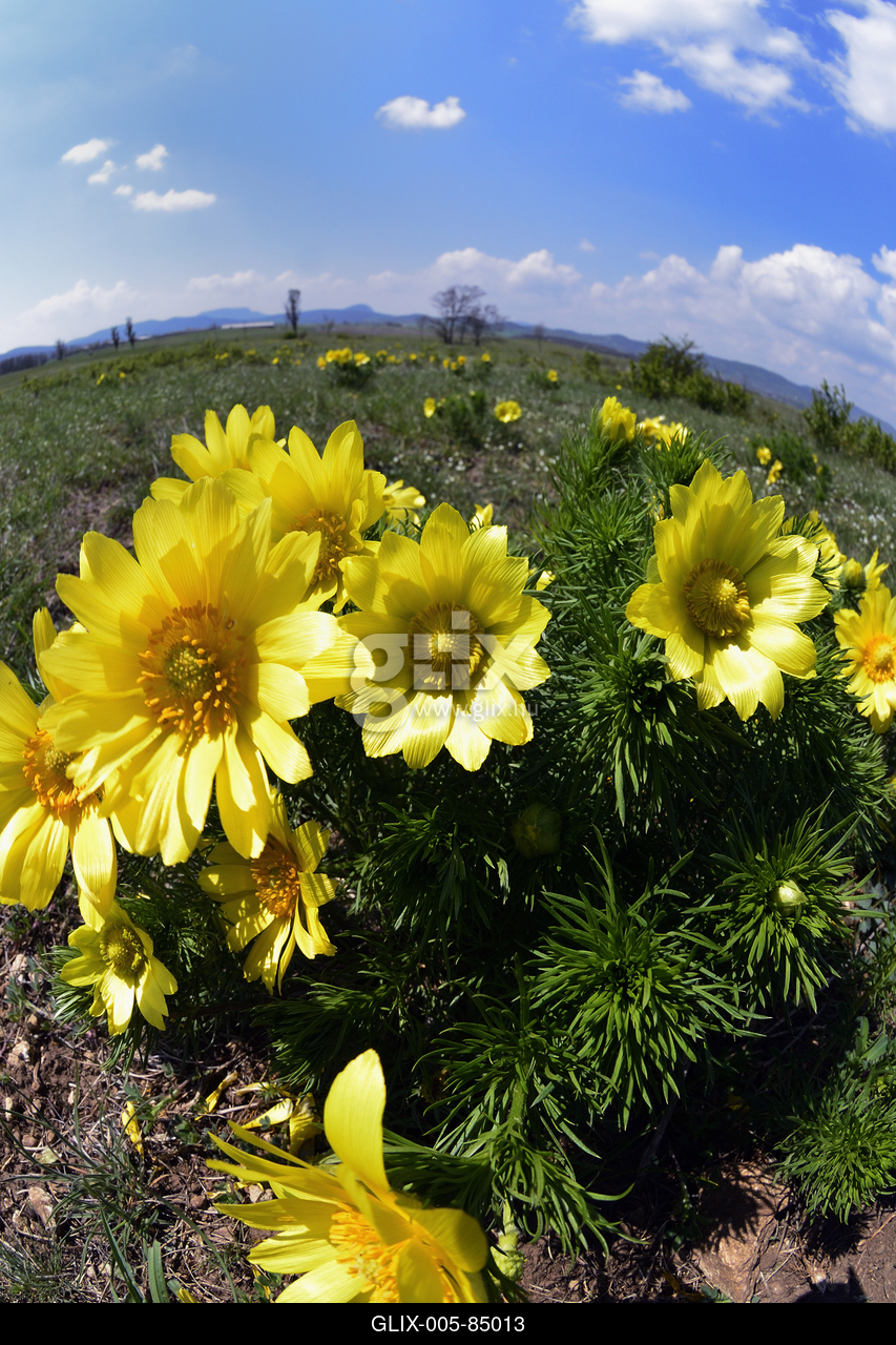 Virágzik a tavaszi hérics (Adonis vernalis) Kővágóőrs határában.