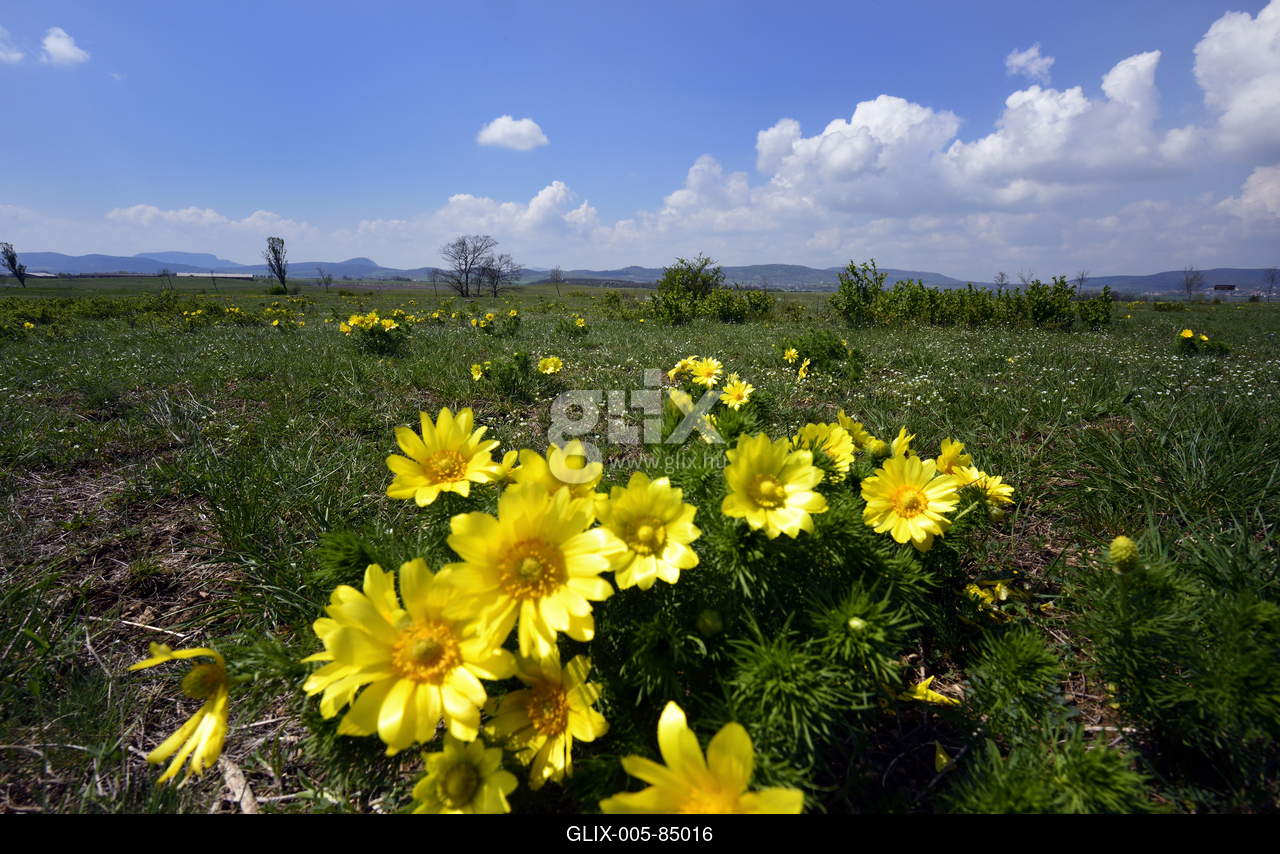 Virágzik a tavaszi hérics (Adonis vernalis) Kővágóőrs határában.