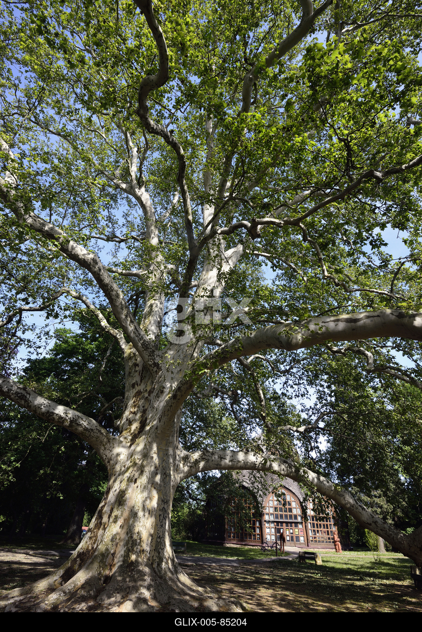 A Kastély park kiemelkedő kincsei közé tartozik a város jelképévé vált, 615 cm körméretű, 20 méter magas platán, melynek a koronaátmérője meghaladja a 36 métert is. Egyes becslések szerint kora 500 év is lehet.