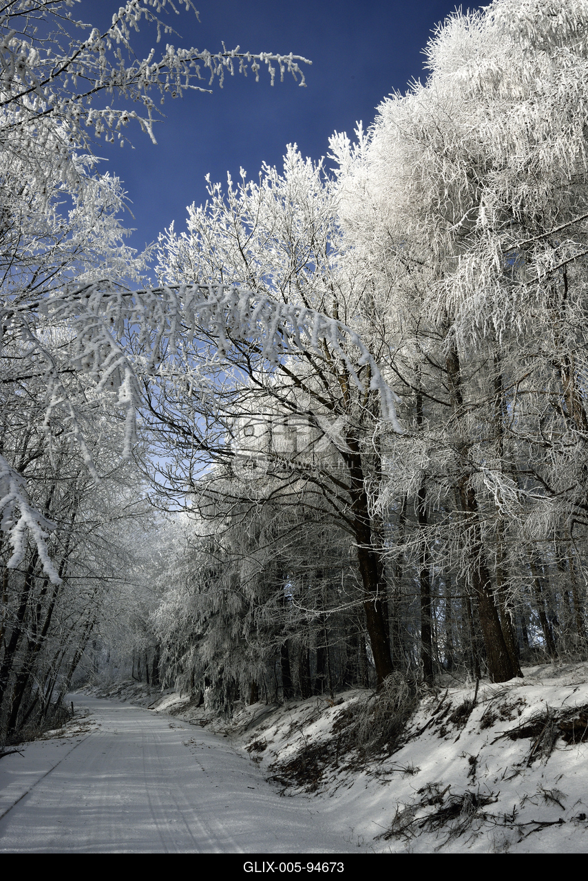 Zúzmarás, havas téli táj a Mátrában, Kékestető közelében.