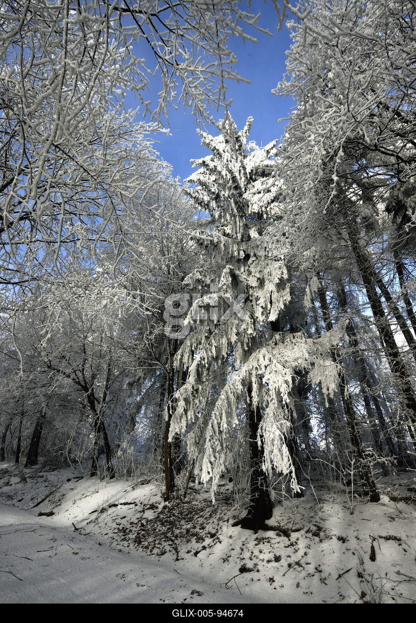 Zúzmarás, havas téli táj a Mátrában, Kékestető közelében.